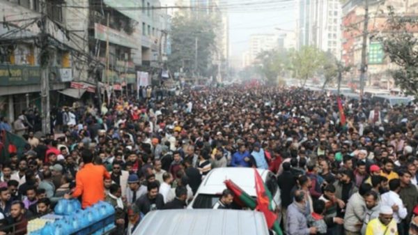 নিজস্ব প্রতিবেদক, দ্য টাইমস নিউজ বিডি: ভারতের আগরতলা অভিমুখে লংমার্চ শুরু করেছে জাতীয়তাবাদী যুবদল, স্বেচ্ছাসেবক দল ও ছাত্রদল। ভারতের আগরতলায় বাংলাদেশের সহকারী হাইকমিশনে হামলা ও বাংলাদেশের জাতীয় পতাকা অবমাননা ও